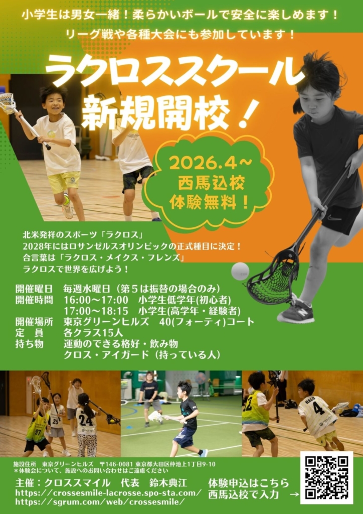 西馬込にラクロススクールがやってくる!【無料体験レッスン】