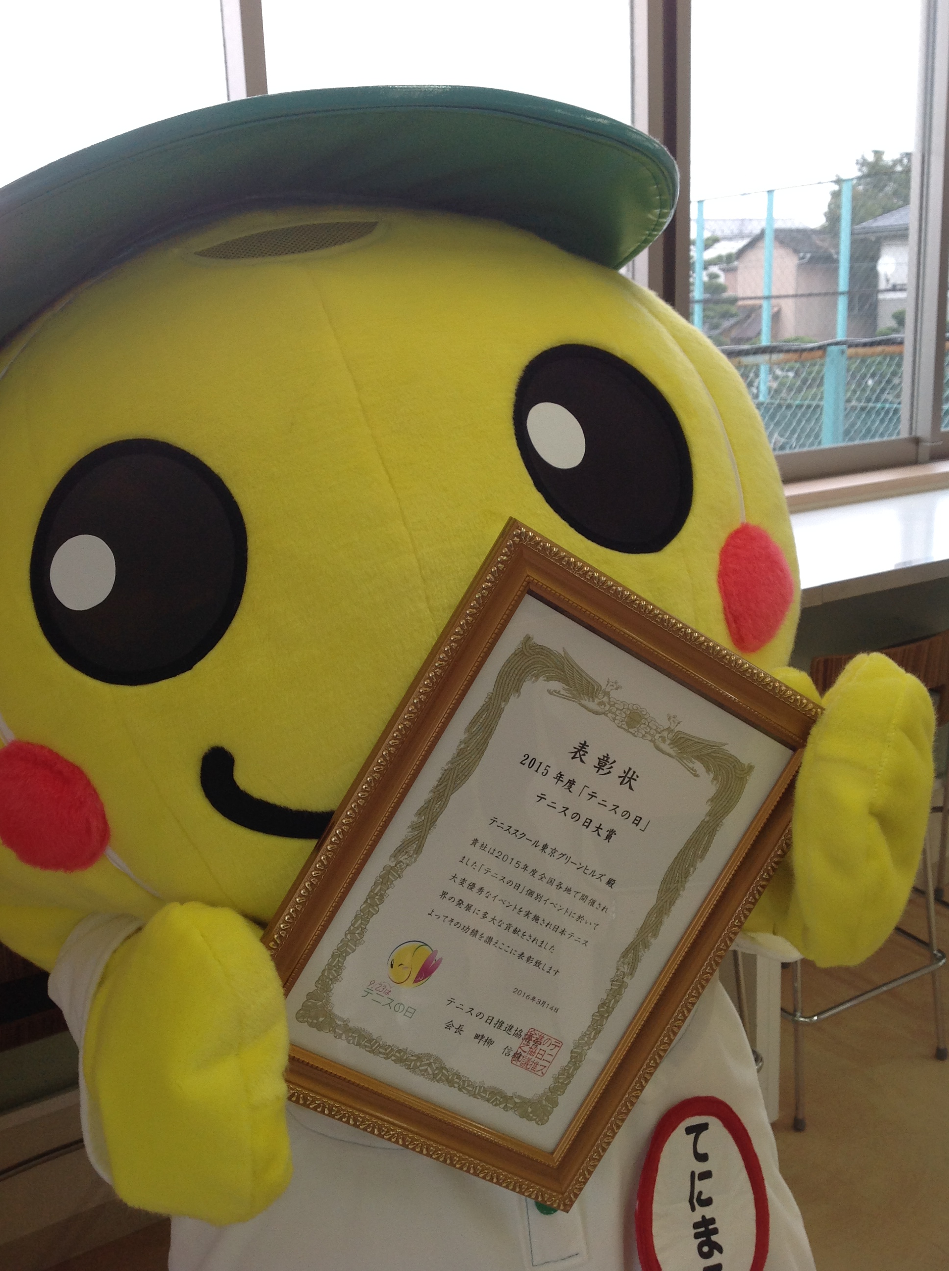 てにまる てにまるの写真が飾られているまる! 2016.03.24 こんにちま~る♪♪ テニスの日大賞受賞の賞状が届いたまるっっっ★ 嬉しいまる~・・・(;〇;) 去年と今年で2年連続の表彰まるよ~♪♪ テニスの日大賞受賞の写真が1Fギャラリーに展示されているまる~♪♪ みんなみてまる~!! 来年も賞をもらえるように頑張るまる!!