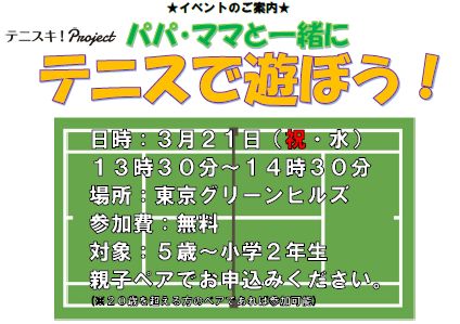 2018/3/21(祝・水) パパ・ママと一緒にテニスで遊ぼう!