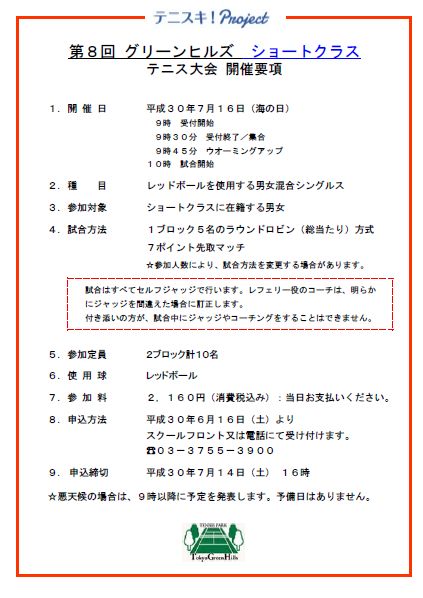 第8回 グリーンヒルズ ショートクラステニス大会を実施致します。