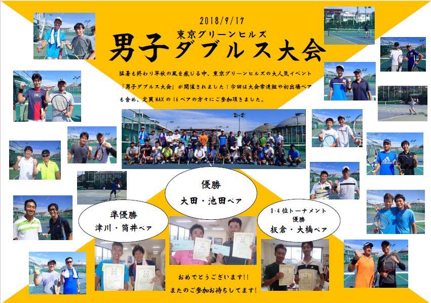 2018/9/17 男子ダブルスの結果をお知らせします。