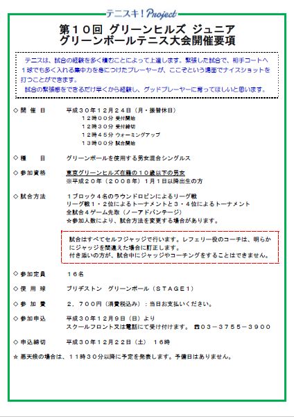 第10回 グリーンヒルズジュニアグリーンボールテニス大会を実施致します。