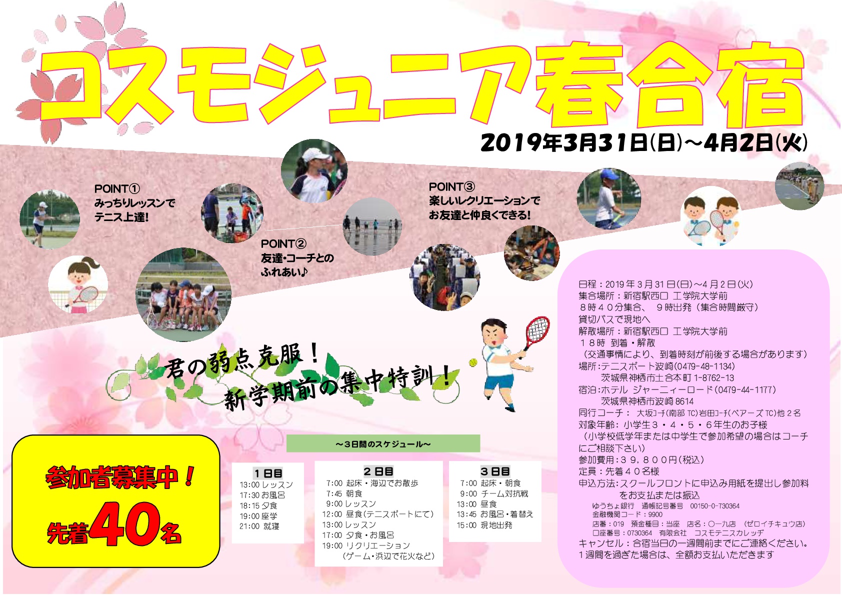 2019年コスモジュニア春合宿のご案内♪