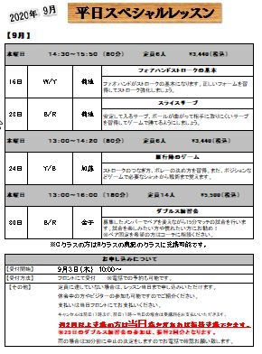 9月の平日スペシャルレッスンの日程が決まりましたのでお知らせいたします。。