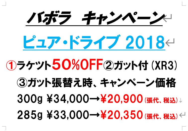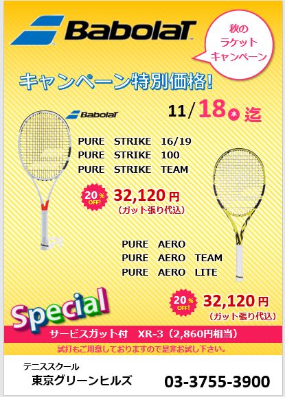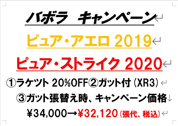 お知らせ バボラ ラケットキャンペーン 2020.10.31 みなさんこんにちは! バボラ ラケットキャンペーン実施致しております♪♪ キャンペーン期間:~11/18(水)まで 試打もございます。 皆様是非お試しください~! バボラ ラケットキャンペーン (1)